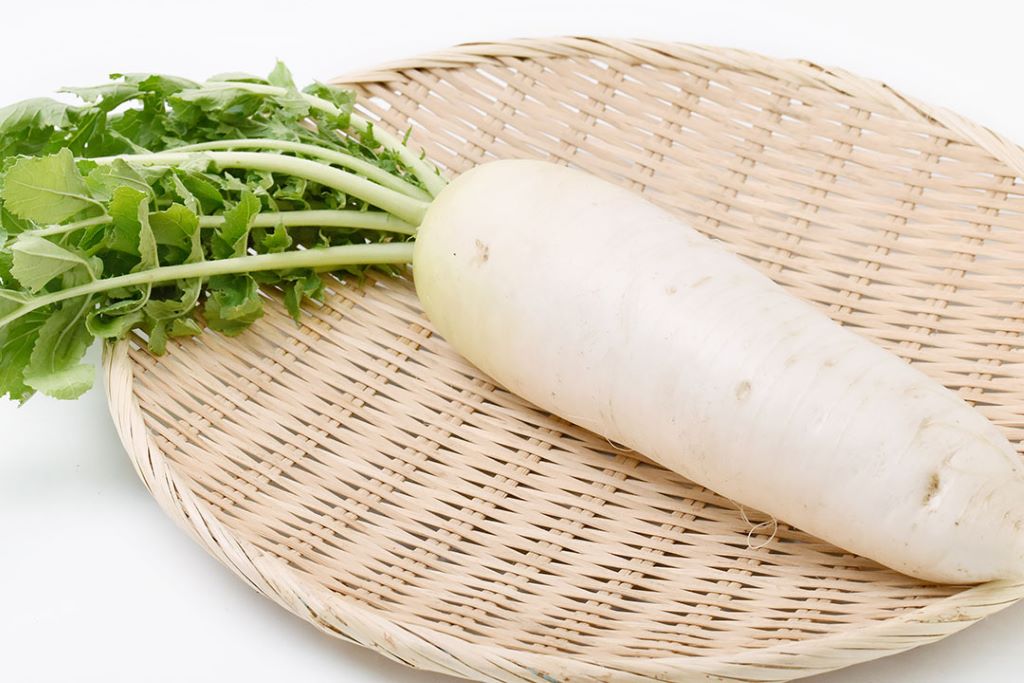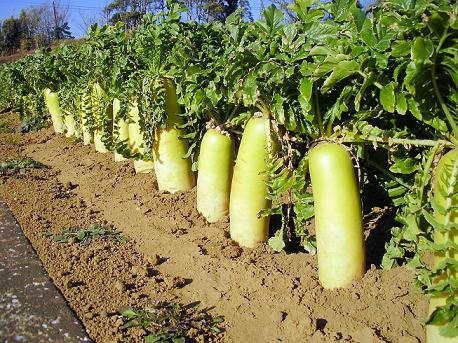 大根 大根には沢山の種類があり大きさや形も様々です。最近はカラフルな大根を作る農家もいます。大根は葉に近い上のほうが甘味が強く、先端の下の部分には辛みがあります。その理由は、地上に近い上部は寒さで凍らないように糖度を上げるため甘く、そして先端のほうは土中の虫よけに辛味成分が効果的だからといわれています。また、葉も栄養に富んでいます。細かく刻んでごま油で炒め、かつお節とだし醤油で味を調えると、美味しい逸品になります。
