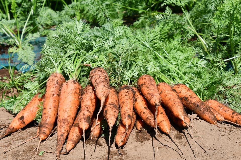 にんじん 昔は子どもたちの嫌いな野菜の代名詞でしたが最近は改良を重ね食べ易くなっています。にんじんは皮の近くが甘く栄養も豊富なので薄く剥き、剥いた皮は千切りにしてゴマ油で炒めてきんぴらにして食べると美味しいです。一般的なオレンジ色の五寸ニンジンの他に金時ニンジンや黄色い島ニンジン更に紫色のものなど色々な品種があります。また、最近はスリムなスティックタイプのニンジンもよく見かけます。様々な料理に使え常備しておきたい野菜のひとつです。