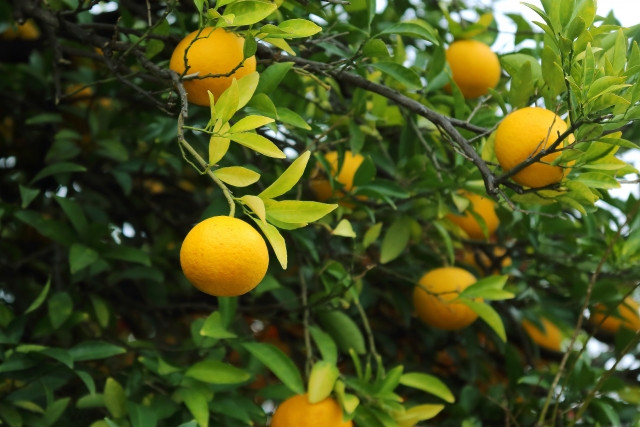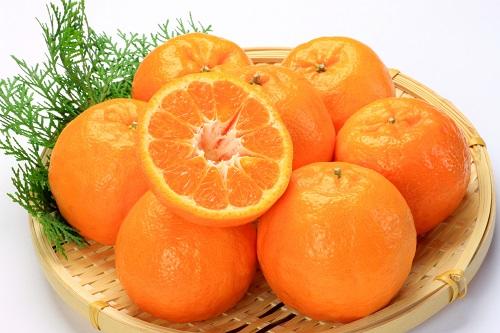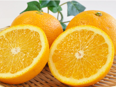 いよかん いよかんは山口県で誕生した柑橘です。ミカン類とオレンジ類の交雑種ではないかといわれています。甘みが強くて酸味は控えめ。果肉はやわらかくとてもジューシーです。果実は比較的大きいですが、手で皮が簡単に剥けるのも魅力です。袋(じょうのう膜)は厚めなので、1つずつ剥いて果肉だけ食べるとよいでしょう。種が少々入っていることもあります。現在では主に愛媛県で生産され、名前も現在の主な産地である伊予の国(愛媛県)から「いよかん」と付けられたようです。種は少々あります。