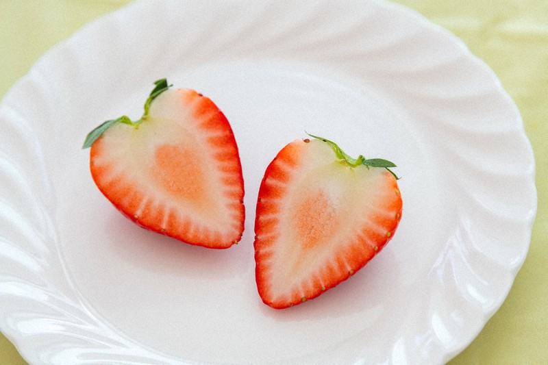とちあいか 栃木県から2019年に初出荷された新品種のいちごです。「とちおとめ」よりも比較的に糖度が高く、酸味はやや低く食味良好です。ひと粒が大きいので食べごたえがあります。また、果実も締まっており、ほおばると口の中で特有のみずみずしさが広がります。食べる前の香りの強さが特徴的、スッキリとした口あたりで、青臭さが控えめなため、甘さが際立ちます。とちあいかはヘタの部分のくぼみが大きいので、縦にカットするとかわいらしいハート形になります。