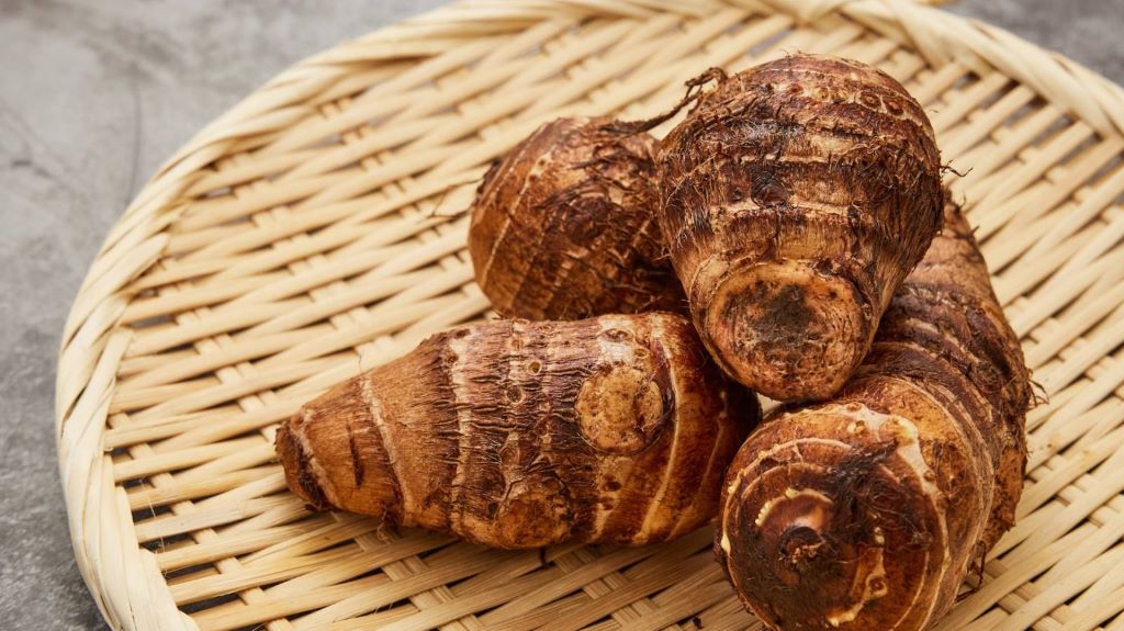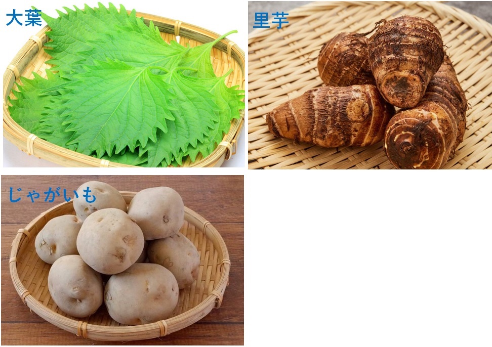 里芋 山で自生していた山芋に対して、里で栽培されることから里芋という名前になったといわれています。里芋は中心に親芋ができ、そのまわりに子芋、さらに孫芋、ひ孫芋と1つの種芋からたくさんのいもができます。普段売られている里芋はおもに子芋と孫芋ですが、親芋も子芋も食べられるものなど色々あります。里芋のぬめりはうま味や栄養のひとつなので、これを生かすか、ぬめりを取って味をしっかりと染み込ませるかはお好みになります。煮物、揚げ物、汁物、コロッケ、衣かつぎなどに適しています。