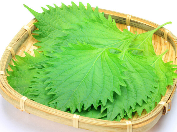 大葉 「紫蘇」と書くように、本来は赤シソのことをシソと呼びます。赤シソは梅干しや紅ショウガなどの色付けに欠かせないものです。青シソは、赤シソの変種で「大葉」ともいいます。日本では平安時代以前から栽培されていました。大葉は清々しい香りが身上でさっぱりとした味わいから、日本の代表的なハーブと言えます。この香り成分による防腐・殺菌作用を活かし刺身のツマをはじめ、どんな素材とも合うため様々な料理に風味をプラスするような使われ方をしています。