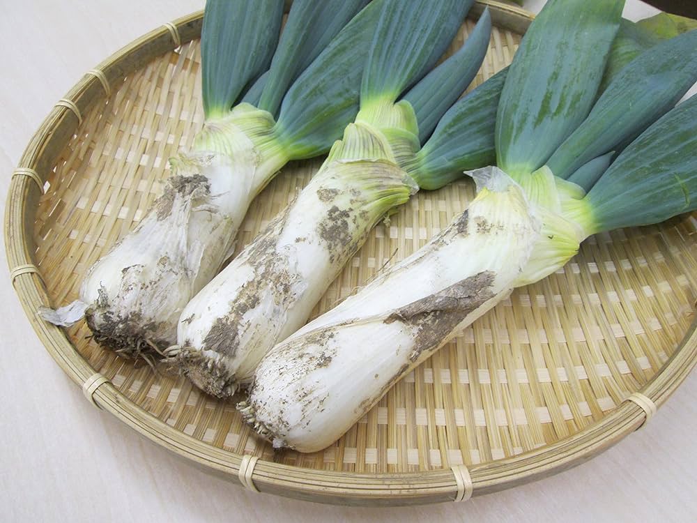 下仁田ねぎ 肉質がやわらかく鍋料理やすき焼きに最適。加熱するととろりとした食感になり、甘みと風味がアップします。群馬県下仁田町の特産物で味の良さと外見の特徴から「殿様ねぎ」ともいわれます。ずんぐりとした形をしているのが特徴。1本ねぎで株分れは少なく、白根の長さは20cmあまりで直径は6~9センチのものもあり、一般のねぎよりも明らかに太いのが特徴です。採れる時期が短く、市場に出る量も少ないので、主に関東で消費されています。